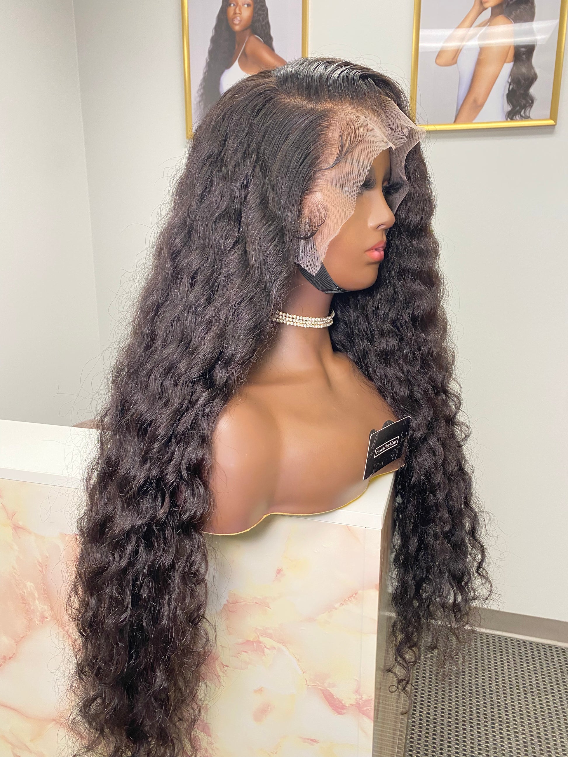 This is our 100% human hair wig, machine sewn from nape to mid-front meeting with the lace frontal or closure for proper security. All FHH wigs come customized, i.e pre-plucked lace, bleached or tinted knots, elastic bands, and wig combs. Buyers can request a customized head size measurement, however, we do have a standard head size measurement ranging from small to large.